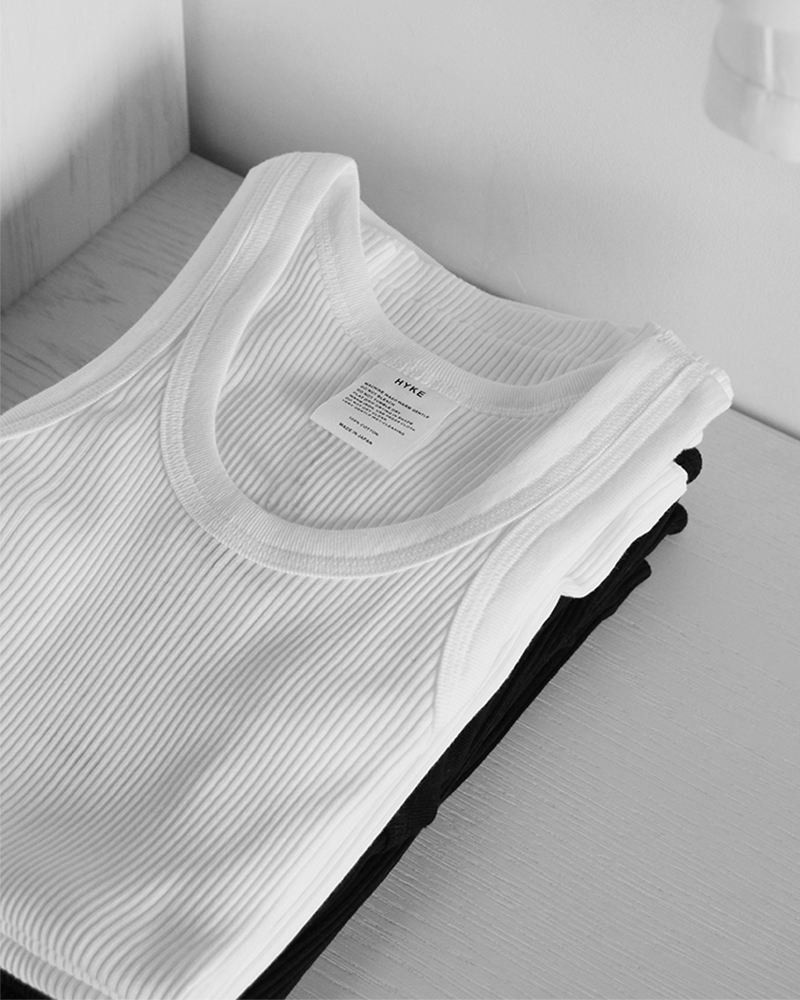 HYKEの定番中の定番、リブタンクトップ。