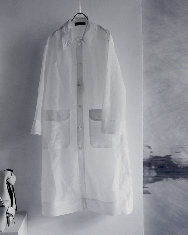 今期トレンドのオーガンジー素材で透け感を楽しめるシャツコート